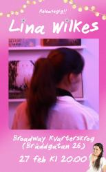 | 2026-02-27 | Lina Wilkes Releasegig |  | Lina Wilkes är den tjugoårig singer-songwritern från Hälsingland.