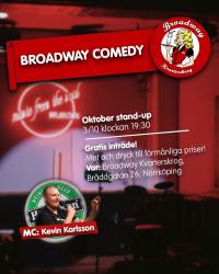 | | 2025-10-03 | Höstpremiär för Broadway Comedy | Kevin Karlsson är mannen som skapat en scen i